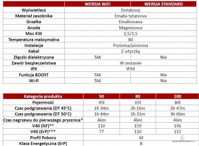 • Czas podgrzewania: 94 min (ΔT = 45°C)