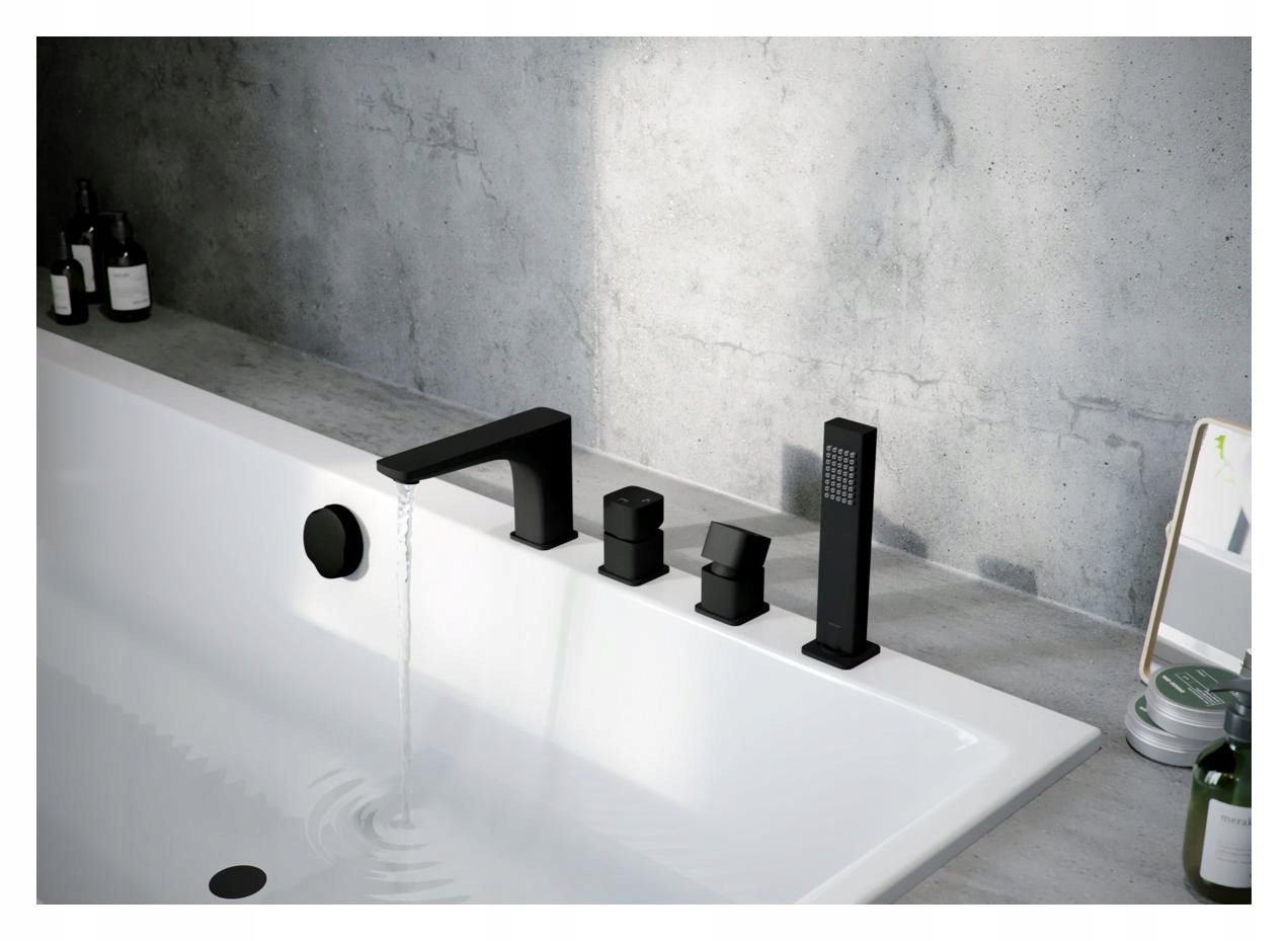 Czarny, matowy kolor wykończenia doskonale wpisuje się w nowoczesne aranżacje łazienek, nadając im eleganckiego i spójnego wyglądu. Wszystkie widoczne elementy metalowe, takie jak głowica, nasadka czy sitko, zostały wykończone w identycznym kolorze i stylu.