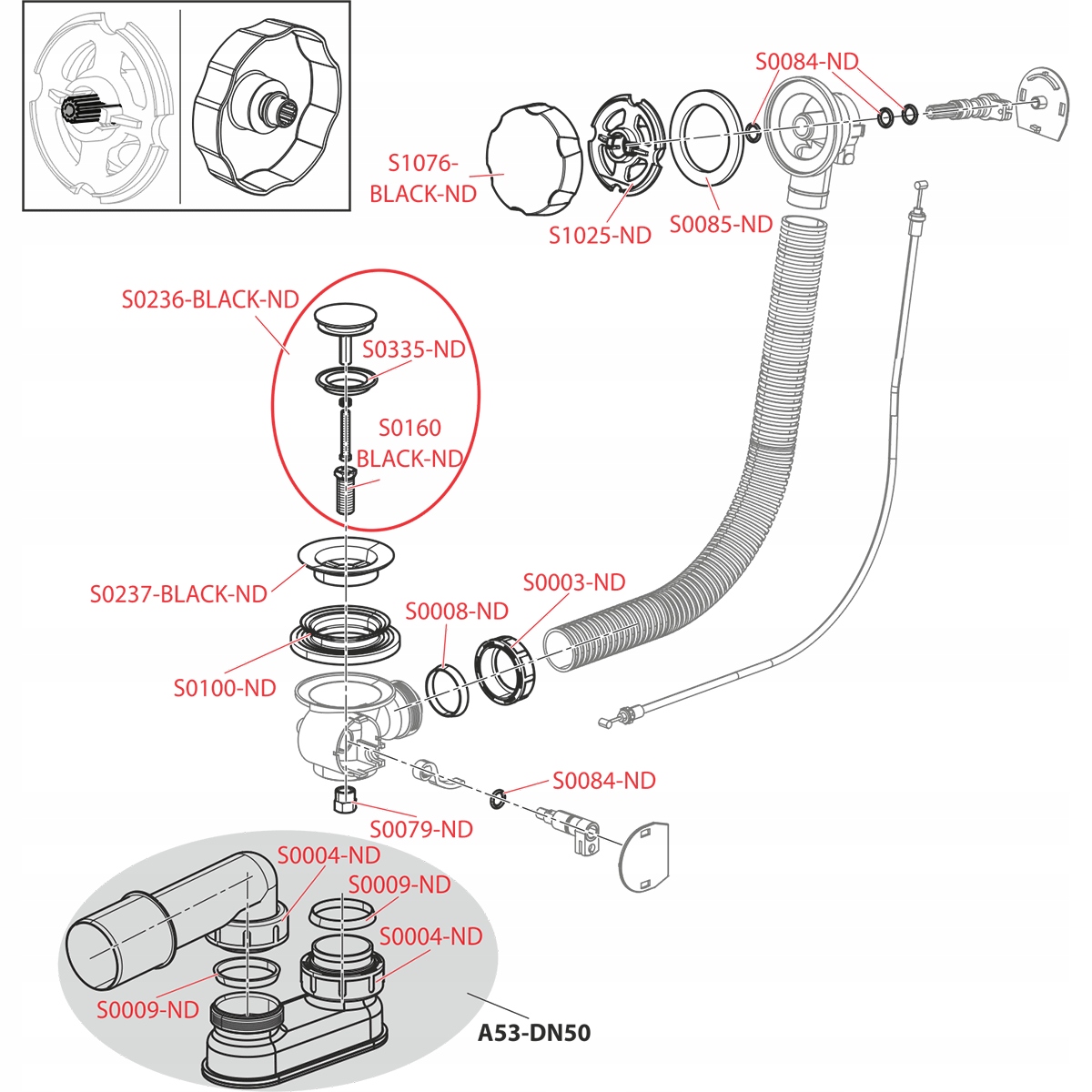 Home » Sklep » Czarny syfon wannowy Alcaplast A55BLACK | Ø52 mm | Pokrętło | Matowy metal
