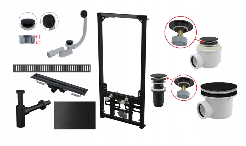 • Nasadka i sitko odpływowe (czarny-mat)