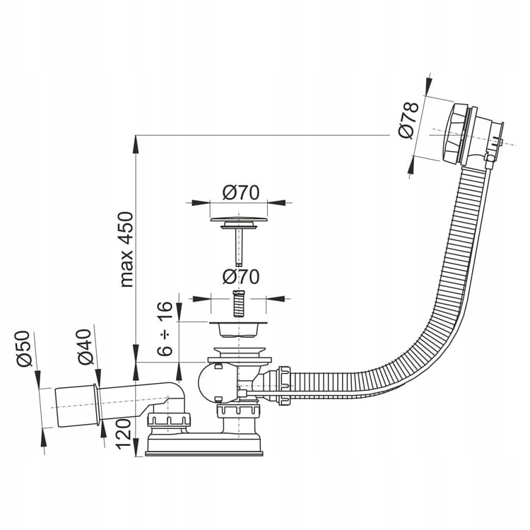 Zestaw zawiera pełen pakiet montażowy z uszczelnieniami, co pozwala na szybkie i szczelne podłączenie syfonu do wanny bez konieczności zakupu dodatkowych elementów.
