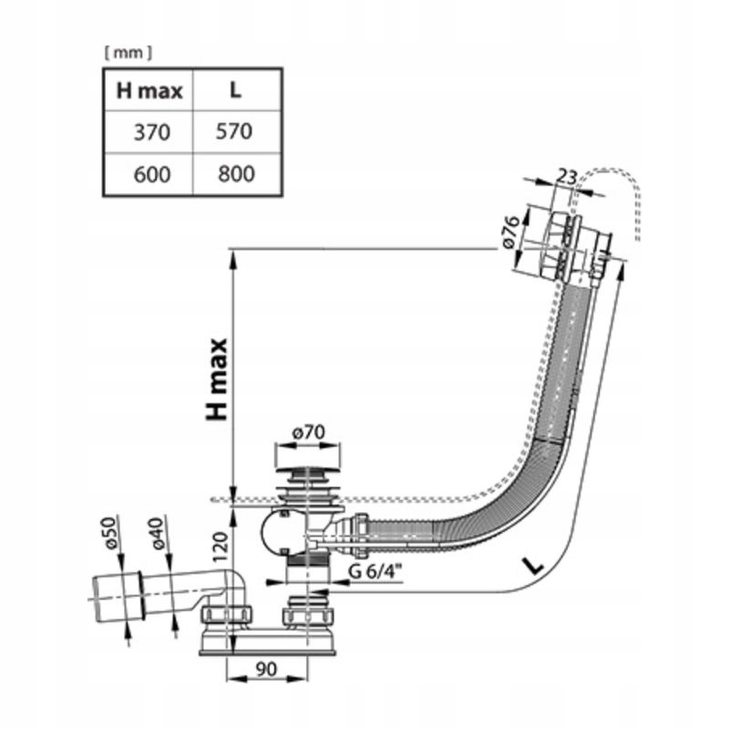 • Średnica odpływu: 50 mm