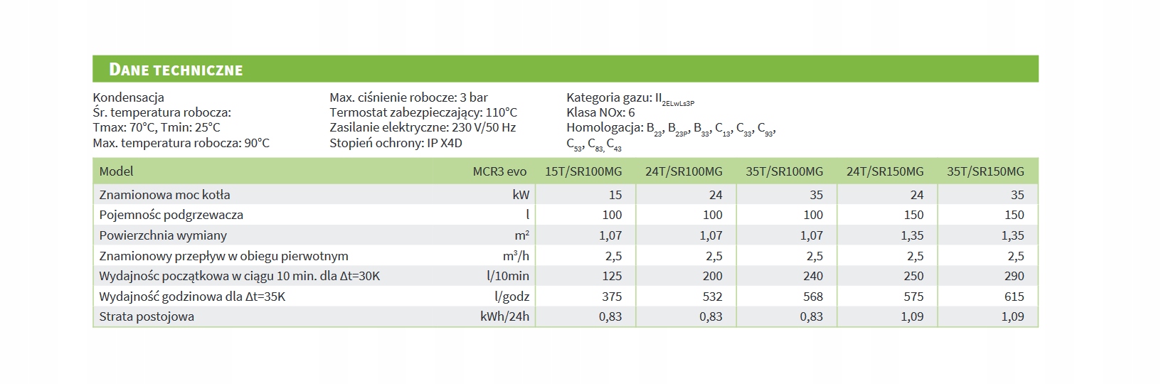 Parametry techniczne kotła MCR3 Evo 24T