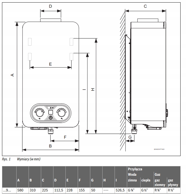 • Typ urządzenia: Przepływowy podgrzewacz gazowy