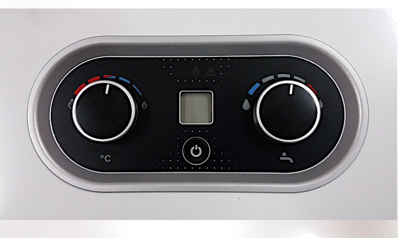 Dwa wygodne pokrętła (do regulacji mocy i przepływu) oraz wyświetlacz LCD umożliwiają precyzyjne ustawienie parametrów pracy. Po wstępnej konfiguracji urządzenie automatycznie dostosowuje moc palnika do przepływu wody.