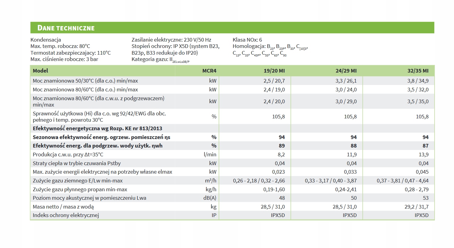 • Klasy energetyczne: A dla c.o. i c.w.u.