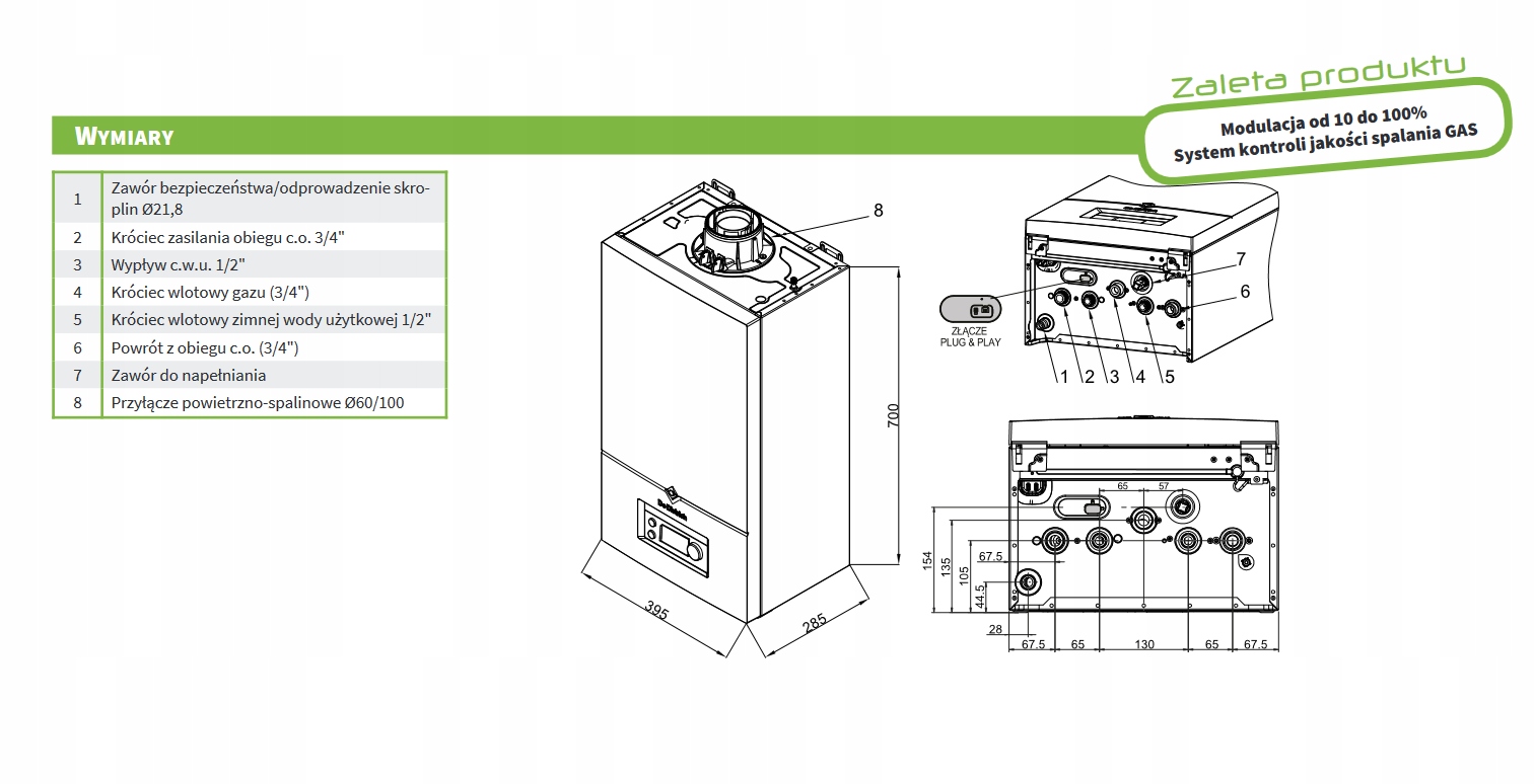 • Przyłącze powietrzno-spalinowe: Ø60/100 mm