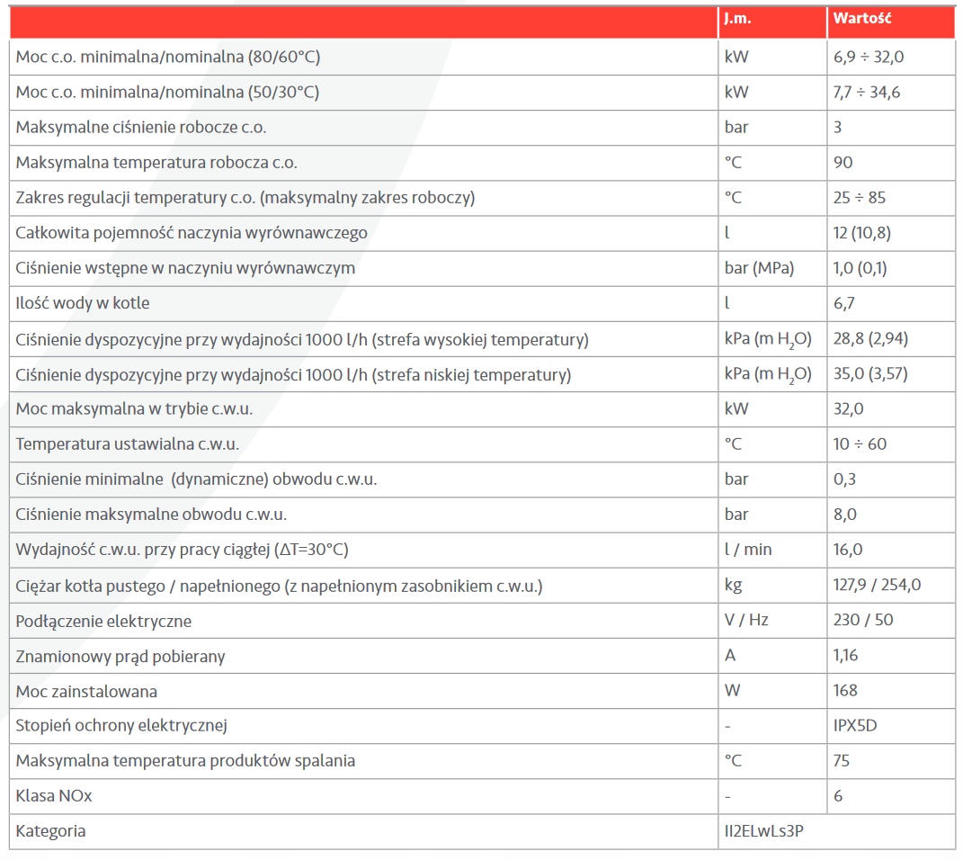 - Moc grzewcza: 6,9–32,0 kW
