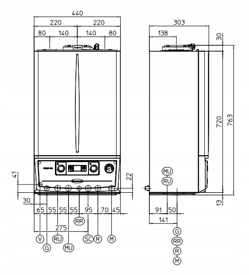 Urządzenie wyposażono w nowoczesny palnik PRE-MIX, który zapewnia wysoką efektywność spalania oraz elektroniczny system zapłonu i modulacji. Sterowanie pracą kotła odbywa się cyfrowo, co umożliwia łatwe dopasowanie parametrów do potrzeb użytkownika.
