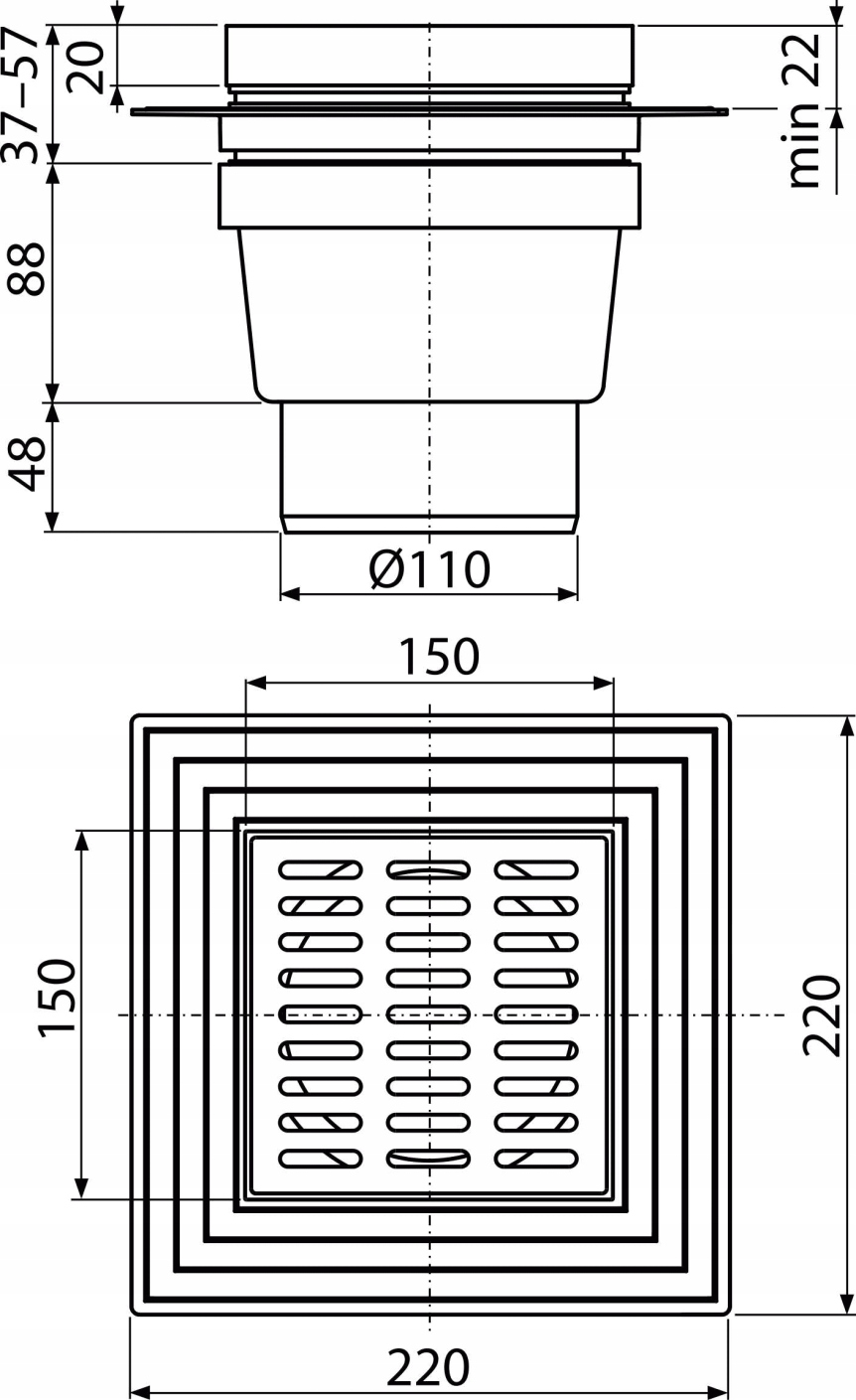 - Wymiary kratki: 150 × 150 mm