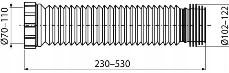 Model A97SN został zaprojektowany z myślą o uniwersalności – pasuje do większości standardowych misek WC oraz rur spustowych. Jego największym atutem jest możliwość regulacji długości w zakresie od 230 do 530 mm, co umożliwia elastyczne dopasowanie do różnych instalacji sanitarnych.