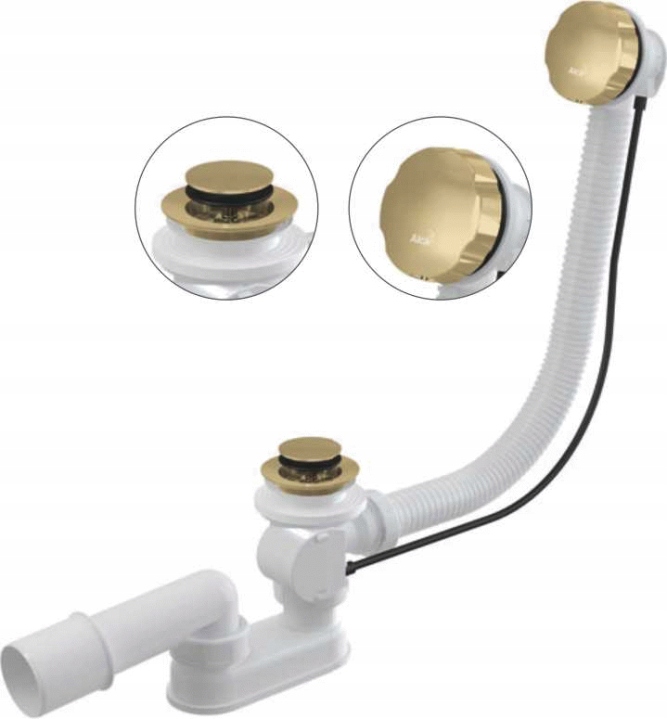 Syfon wannowy Alcaplast A55K-G-P | Złoty połysk | Ø52 mm|Korek automatyczny