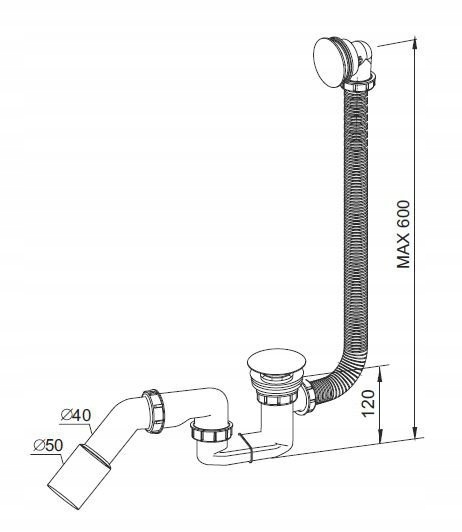 - Montaż: Do wanien z otworem Ø 50/60 mm